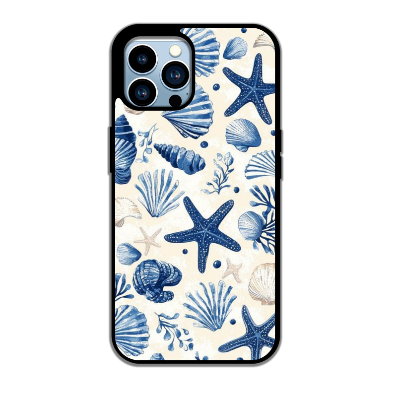 Coquillages, étoiles de mer, coraux… le tout dans des tons bleus apaisants rappelant l’océan.