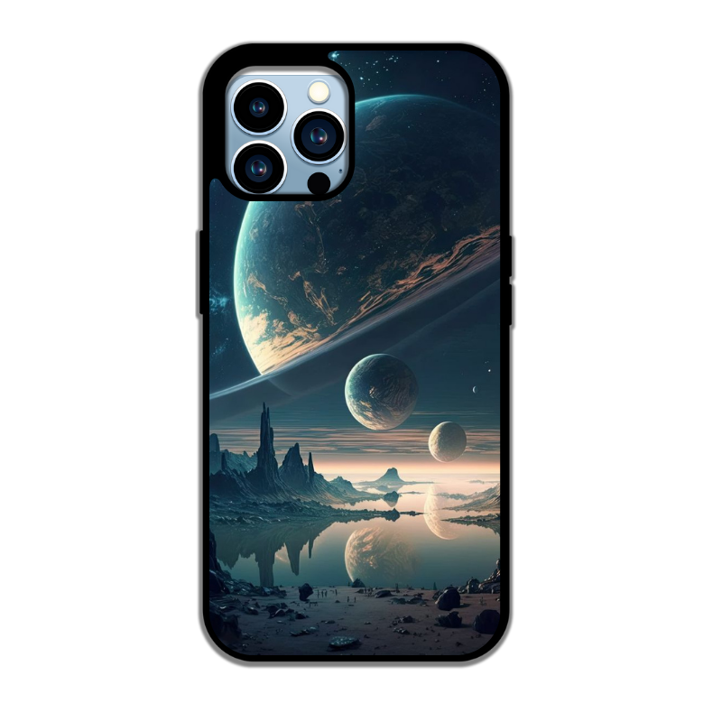 Un paysage lointain sâĂ©tend Ă perte de vue, baignĂ© par la lumiĂšre de planĂštes gĂ©antes en orbite autour dâun monde inconnu. Reflets interstellaires, cieux profonds et lignes astrales se rencontrent dans une scĂšne qui invite au rĂȘve et Ă lâintrospection.