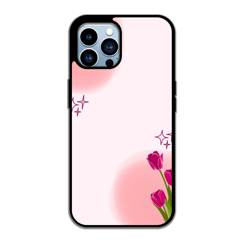 Un fond rose dégradé tout en légèreté, illuminé de petites étoiles et orné de tulipes fuchsia dans un coin. Ce design simple et raffiné évoque la tendresse, le printemps et les petits instants poétiques.