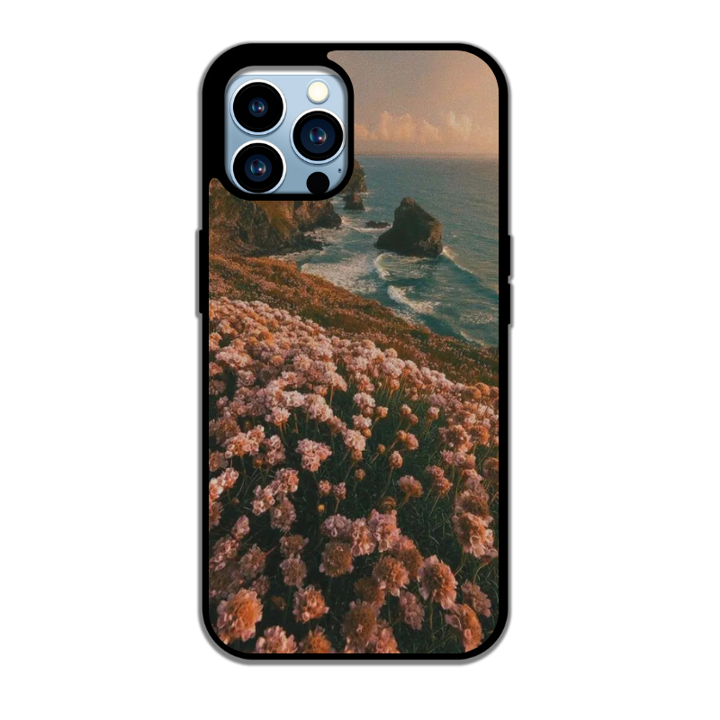 Un champ de fleurs en pleine floraison surplombe une mer calme, sous un ciel d’or. Cette coque capture l’instant parfait où la nature, l’océan et la lumière s’unissent pour apaiser l’âme et faire voyager l’esprit.