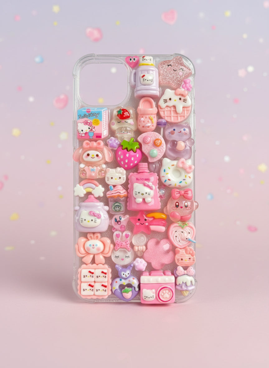 Coque transparente recouverte de charms et résine UV, pour un rendu ultra chargé, kawaii et unique ✨
